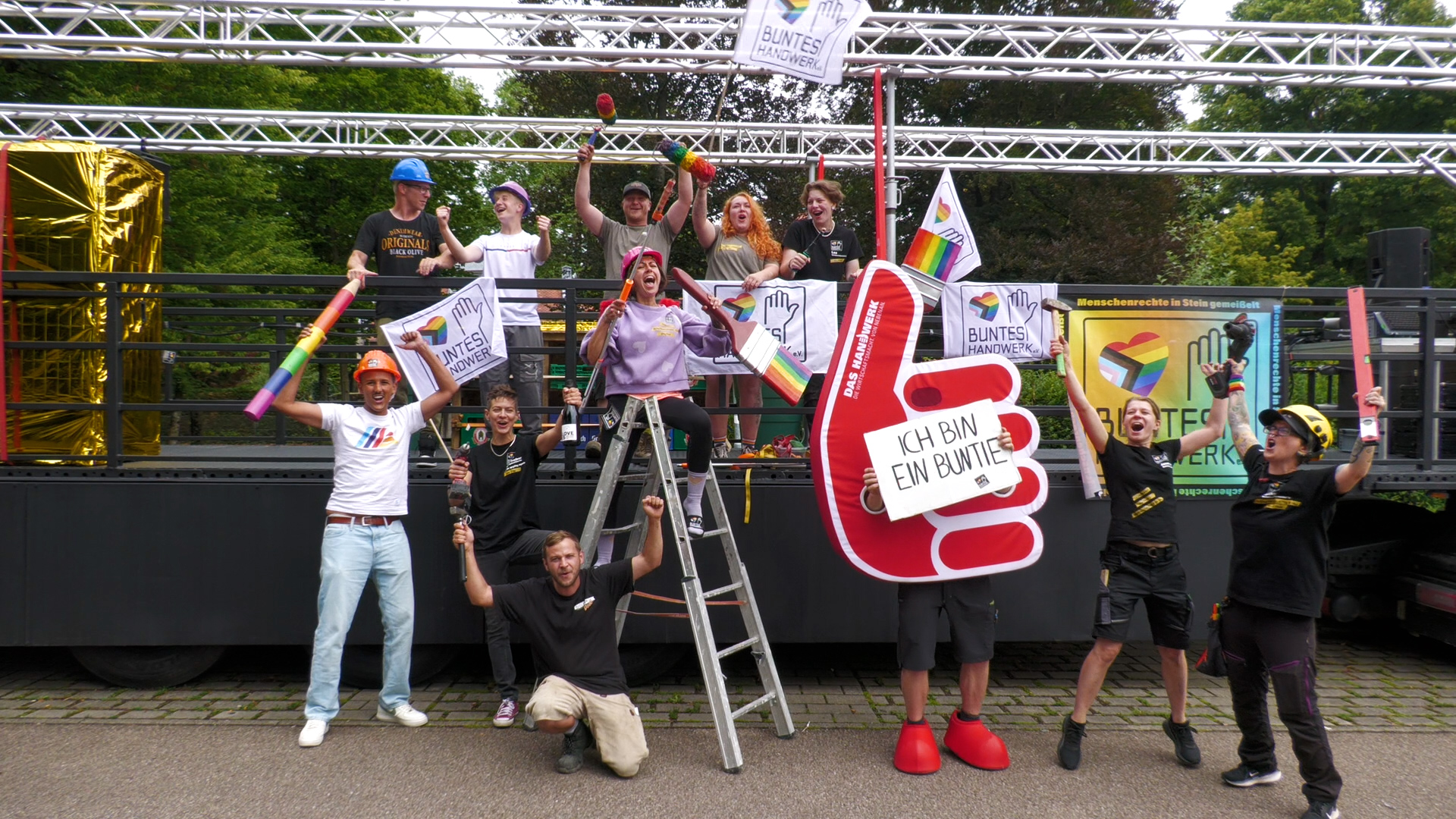 Uber 100 Handwerkerinnnen und Handwerker aus ganz Deutschland folgten dem Aufruf der Initiative „Buntes Handwerk". Gemeinsam setzten sie auf der Parade „Cologne-Pride" ein Zeichen für Diversität in der Berufswelt. Auch 2024 sind verschiedenste Aktionen geplant, um für ein buntes Handwerk zu werben.