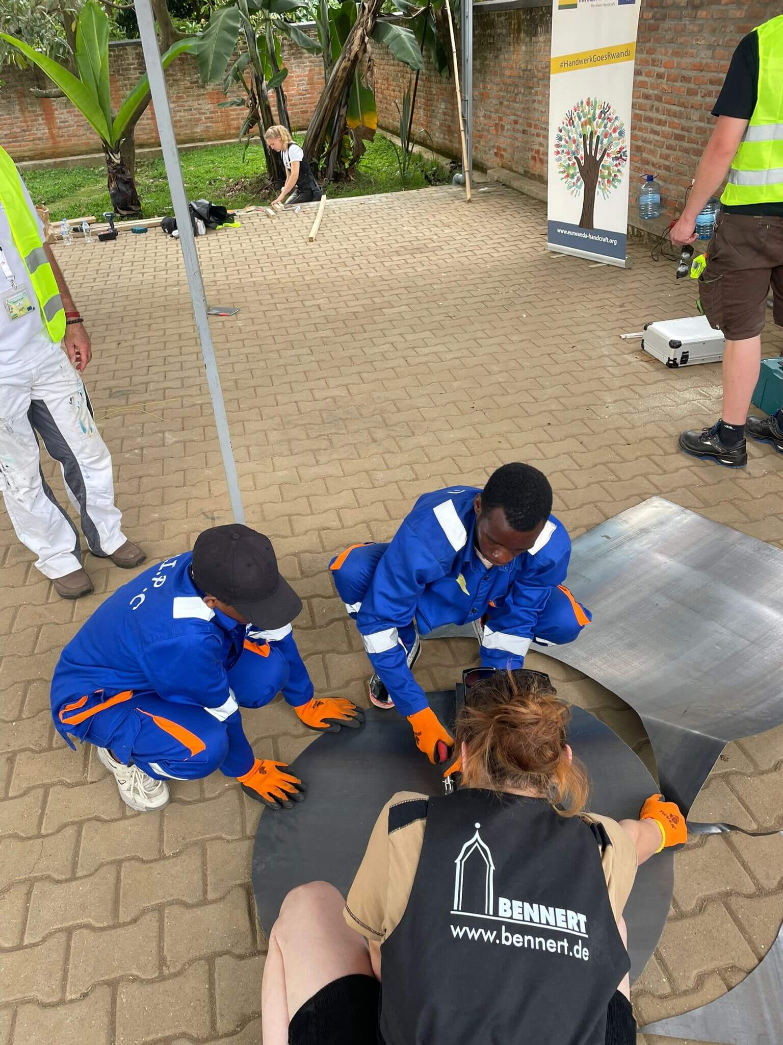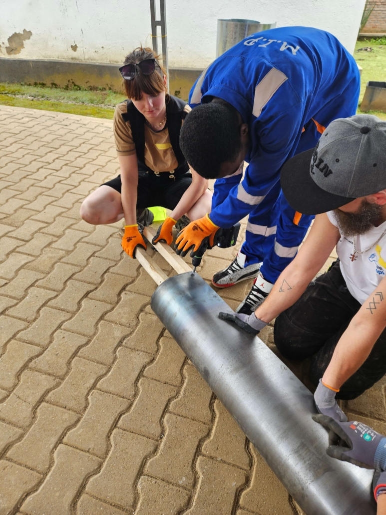 Deutsche und ruandische Handwerker*innen arbeiteten in gemischten Teams eng zusammen. In diesem Austausch wurden handwerkliche Fähigkeiten geteilt, praktische Lösungen entwickelt und gemeinsam gebaut. Neben baulichen Maßnahmen gehörten auch gemeinsames Kochen, Gespräche und gegenseitiges Lernen zum Projektalltag.